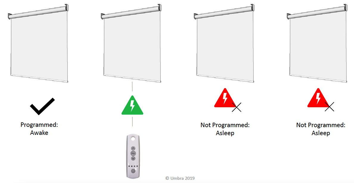 Only the blind you want to program can be 'awake', all other blinds must be deactivated whilst programming. Once a motor has been fully programmed there is no need to deactivate it before programming the next motor